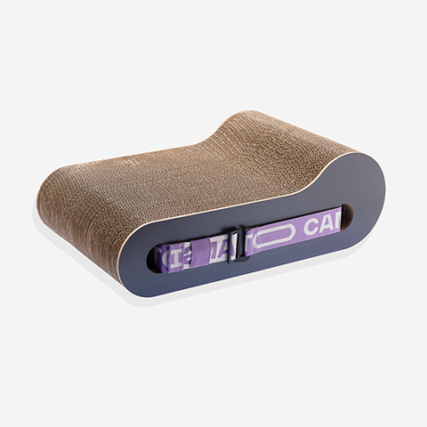 O arranhador é feito do material favorito dos gatos, o papelão. Além de ser confortável, o gato não corre o risco de enroscar a unha enquanto arranha.
