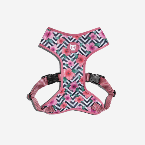 A Mahalo é uma opção super moderna de coleira para cachorros com estampa dupla-face de zig-zag e flores hibisco, seguindo tendências gráficas da moda. As coleiras da Zee.Dog tem textura macia, fecho com sistema de segurança de 4 pontos e regulagem para ajustar bem no pescoço do seu cachorro.