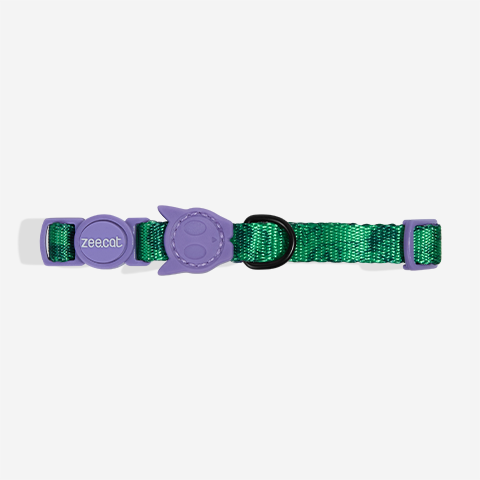 A coleira para gatos Pantera Negra da Zee.Cat tem fecho breakway, que abre sozinho caso o gato se enrosque, além de ser totalmente regulável. É feito de poliséster e é estampado com a tecnologia heat-transfer. Possui gráficos retrô do personagem.