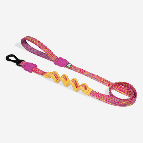 A guia com amortecedor para cachorros Chop da Zee.Dog é perfeita para cachorros que acham que são búfalos. Sua mola amortecedora absorve o impacto da puxada, aliviando a tensão no seu pulso e ombro. A guia Chop é feita com fios Boucle multicoloridos, resistente, com toque macio e textura visual moderna. Além disso, a guia Chop conta com uma etiqueta emborrachada exclusiva. A guia para cachorros Chop Zee.Dog é realmente premium: tiras de poliéster macio, gancho super resistente, design exclusivo e extremamente confortável.
