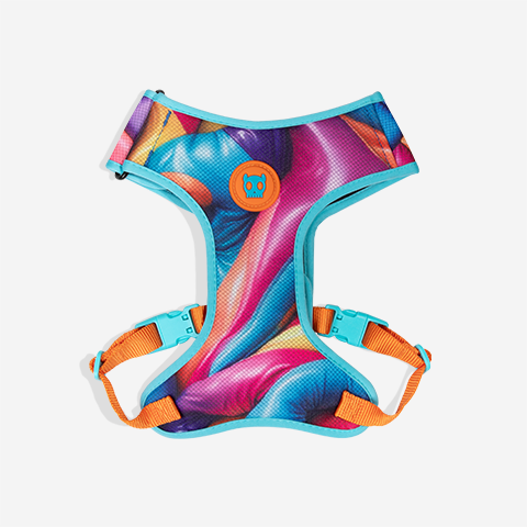 O peitoral Air Mesh Ajustável H3D Bounce para cachorros não esquenta pois possui trama aerada que permite a passagem de ar, refrescando a pele e o pelo do cachorro. É regulável tanto na barriga quanto no pescoço e possui anel para prender a guia na parte das costas. É recomendado evitar contato com superfícies ásperas ou cortantes. Desenvolvida com processos tecnológicos inovadores, a estampa traz texturas ultra realistas e gráficos abstratos, explorando a linha entre o real e o irreal. O Peitoral H3D Bounce conta com uma borracha exclusiva House of 3D.