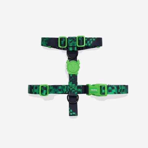 O peitoral H para cachorros Error #410 da Zee.Dog é feito de poliéster resistente, o mesmo usado em cintos de segurança. Possui grande capacidade de ajuste tanto no pescoço quanto na cintura, sendo de fácil adaptação e possui duas posições para prender a guia. Assim como os cintos de segurança, é recomendado evitar contato com superfícies ásperas ou cortantes como mordidas, por exemplo. A estampa Error #410 foi desenvolvida para a coleção Glitch, com gráficos inspirados em erros de processamento de computadores. O resultado é uma estampa exclusiva, geométrica e com cores vibrantes. A borracha do Peitoral H para cachorros Error #410 é customizada conforme toda a coleção Glitch.