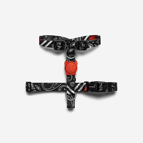 O peitoral para cachorros H Mahleb da Zee.Dog é feito de poliéster resistente, o mesmo usado em cintos de segurança. Possui grande capacidade de ajuste tanto no pescoço quanto na cintura, sendo de fácil adaptação e possui duas posições para prender a guia. Assim como os cintos de segurança, é recomendado evitar contato com superfícies ásperas ou cortantes como mordidas, por exemplo.