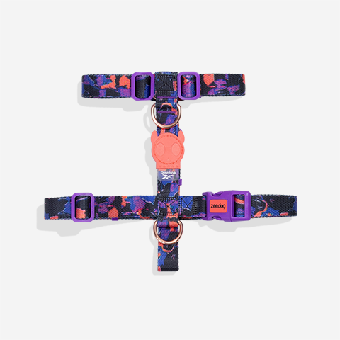 O peitoral H para cachorros Court é mais um lançamento exclusivo da colaboração entre Reebok e Zee.Dog. O Peitoral conta com estampa inspirada na linha de basquete da Reebok dos anos 90. O Peitoral H Court é feito de poliéster resistente, o mesmo usado em cintos de segurança. Possui grande capacidade de ajuste tanto no pescoço quanto na cintura, sendo de fácil adaptação e possui duas posições para prender a guia. Assim como os cintos de segurança, é recomendado evitar contato com superfícies ásperas ou cortantes como mordidas, por exemplo.