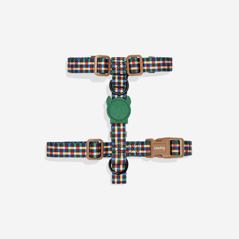 O peitoral H para cachorros Travis da Zee.Dog é feito de poliéster resistente, o mesmo usado em cintos de segurança. Possui grande capacidade de ajuste tanto no pescoço quanto na cintura, sendo de fácil adaptação e possui duas posições para prender a guia. Assim como os cintos de segurança, é recomendado evitar contato com superfícies ásperas ou cortantes como mordidas, por exemplo.