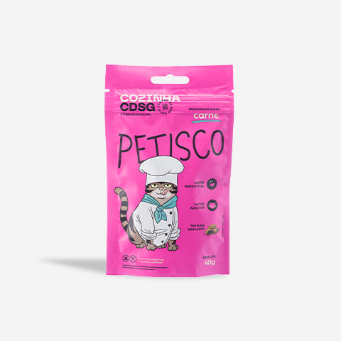 Farinha de Vísceras de Aves, Farinha de Trigo, Quirera de Arroz, Farelo de Trigo, Óleo de Aves, Levedura Hidrolisada de Cervejaria, Hidrolisado de Fígado de Suínos, Polpa Desidratada de Beterraba, Fibra de Cana-de-Açúcar, Aroma de Carne (0,01%), Amido de Mandioca, Goma Alginato, Parede Celular de leveduras, Bentonita, Dióxido de Titânio, Ácido Fosfórico, Sorbato de Potássio, Ácido Propiônico, Ácido Cítrico, Caramelo IV, Taurina, Vitaminas (Retinol, Cianocobalamina, D-Pantotenato de Cálcio, Cloridrato de Tiamina, Riboflavina, Cloridrato de Piridoxina, Biotina, Colecalciferol, Bissulfito Sódico de Menadiona, Ácido Fólico, Ácido Nicotínico, Acetato de DL-Alfa-Tocoferol), Minerais (Cloreto de Sódio, Calcário Calcítico, Cloreto de Potássio, Óxido de Zinco, Sulfato Ferroso, Óxido de Ferro, Sulfato de Cobre, Sulfato de Manganês, Iodato de Cálcio, Sulfato de Cobalto e Selenito de Sódio), Minerais Quelatados (Proteinato de Zinco, Proteinato de Manganês, Levedura enriquecida com Selênio), BHA, BHT.